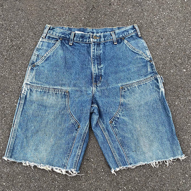 Personnalisé Strass Broderie Applique Ourlet Brut Distressed Rejoindre Jeans Shorts Sun Faded Denim Shorts Hommes