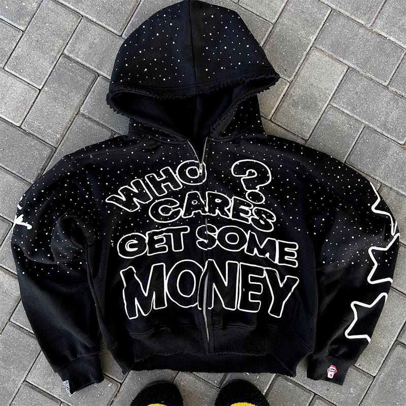 מותאם אישית צרפתית Coodies ped הדפסה ped zip עד חומצה במצוקה שטיפת שטיפת rhinestone